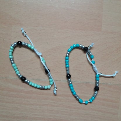 Bracelets perles de rocailles ajustables par noeud coulissant.